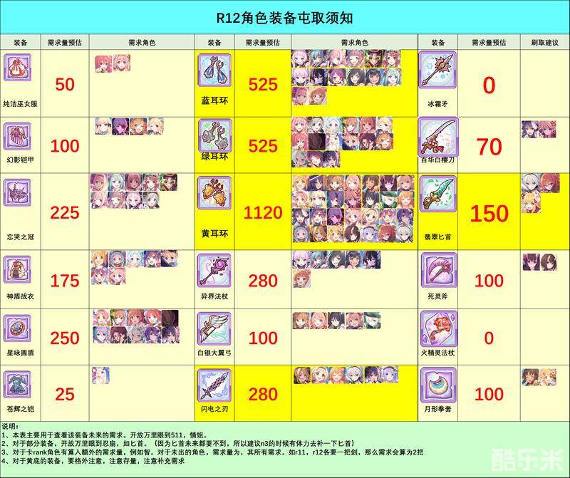需要的量还是挺大的。R12需要的耳环数量简直恐怖。啧啧啧。不过纯洁巫女服和苍辉之铠的需求就没那么多了,万幸,万幸,且R12的辅助角色基本不需要火精灵法杖,好诶。