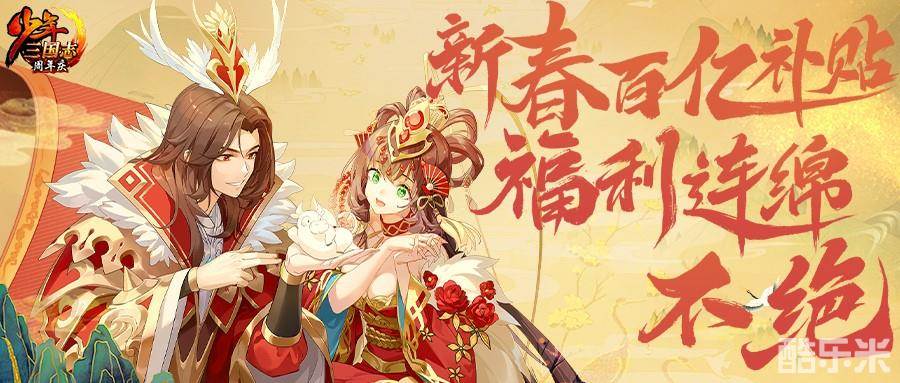 新春百亿补贴,福利连绵不绝!三国热血巨作《少年三国志》“闹新春”版今日欢乐上线!打年兽、战奎牛、闯年关等新春活动联袂开启,十多项新春福利接踵而至,珍稀琉金道具、武将皮肤、限定变装等海量红包让你拿到手软!