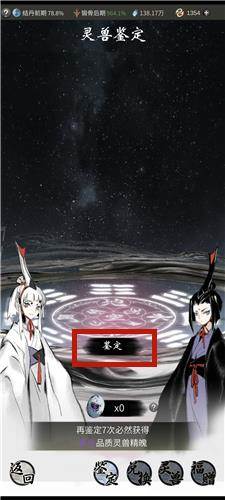 随后会来到灵兽鉴定界面,在拥有灵兽蛋的情况下,点击中间的「鉴定」,就有1%的概率获得灵兽。
