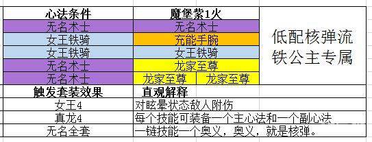 铁公主技能破甲值处于全职业的较低水平,所以九九归一不考虑,同时因为只有魔堡2级羁绊,且没有五圣,只能空出一个自由装备格子,搭配不出任何套装的2件套效果。