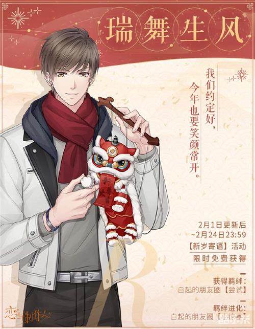 2月1日更新后~2月24日,完成任意主线关卡,即可额外获得道具【年画】。活动期间,玩家可选择一位角色,使用【年画】点亮他的新春拼图,获取随机奖励。九块拼图都点亮后,即可拆开他的【新岁寄语】获得对应角色的R羁绊。角色选定后可更换,也可点亮多个角色的寄语。