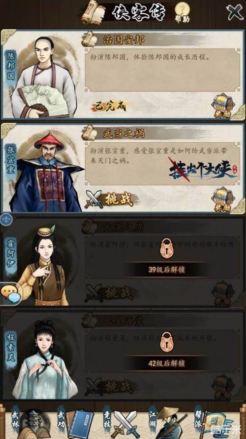 少侠可通过【武林】-【侠客传】进入副本,副本将在少侠达到40级后开放。