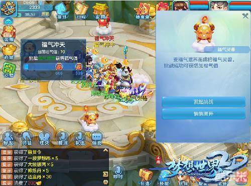 少侠们购买福袋后帮派场景中刷出福袋和福气灵兽,挑战灵兽积攒福气后可开启福袋获得奖励。