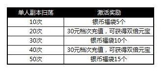 2、活动期间进行单人副本扫荡,即可激活对应的奖励