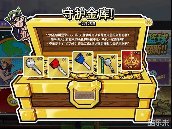 只要连续登录4天,第5天登陆时可以获得金库里的所有礼物。