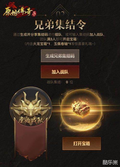 通过生成并分享集结码进行组队,或可输入集结码加入战队,团队满3人即可开启宝箱!