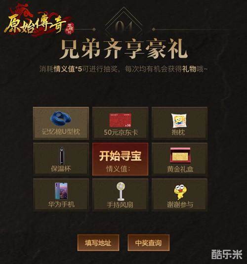 消耗情义值*5可进行抽奖,每次均有机会获得礼物哦~(华为手机、黄金礼盒、抱枕、记忆棉U型枕、保温杯、手持风扇、50元京东卡)