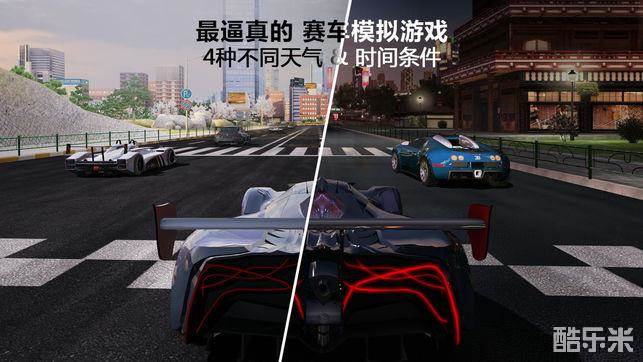 - GT赛车2里并非天天阳光普照:我们的赛车道有日夜等不同时段及多种天气状况。
