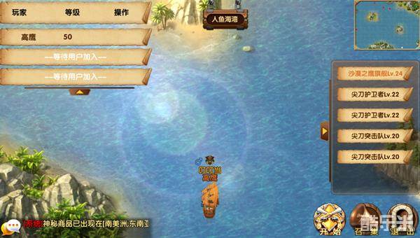 20级副本——人鱼海湾:凑满五艘泰利达帆船,加上一些绿色的火炮,喊几个小伙伴可以顺利通关。没有的话,也可以去公会找一些大腿带一下,等刷两艘卡瑞克出来,开启炮位,自己刷就比较轻松了。卡瑞克可是初期一等一的好船,建议刷满,然后开启炮位。接下来就可以完虐同级的怪甚至可以越级挑战高等级的怪了。