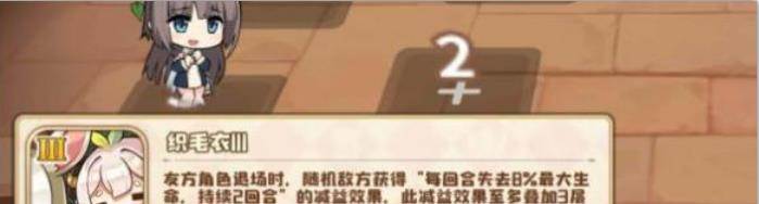 而这就是我们的主要输出剧照了,只要第一回合死三个,就可以给予对方随机角色共三层的debuff,因为遗迹守卫只有一个单位,所以他会受到两回合共计生命最大值48的伤害。