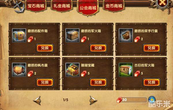 公会商城是获取船只装备最便捷的地方了,只要你有金币,就可以从这里购买到强力的装备。