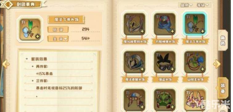 魔法飞书套装:套装属性是提高15%暴击率,以及暴击时无视目标25%的防御,适用于高暴击演员。例如:伊丝露德,艾勒娜。