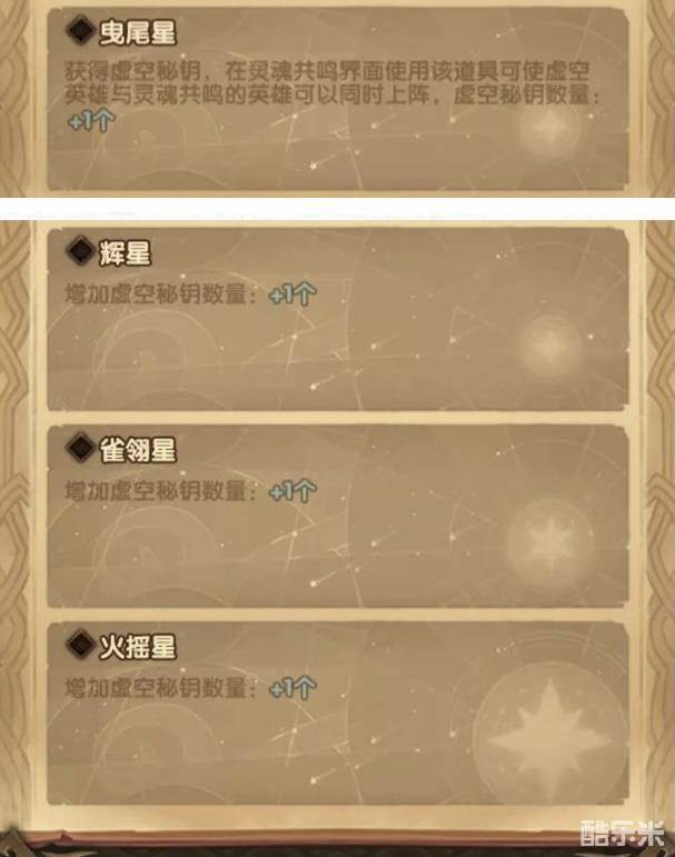 作用:虚空英雄在灵魂共鸣界面装备虚空秘钥后,将可以和缔结灵魂共鸣的英雄同时上阵。
