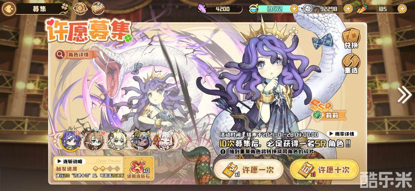 首先肯定是抽莉莉,人马池,许愿选择1号,2号角色