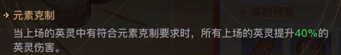 那么,当给我们进行格子攻略时,根据它被克制的元素,来选择英灵出战。就可以增加全队英灵40%伤害,只要有一员是克制属性的,那么全队英灵就都可以享受这40%的加伤。