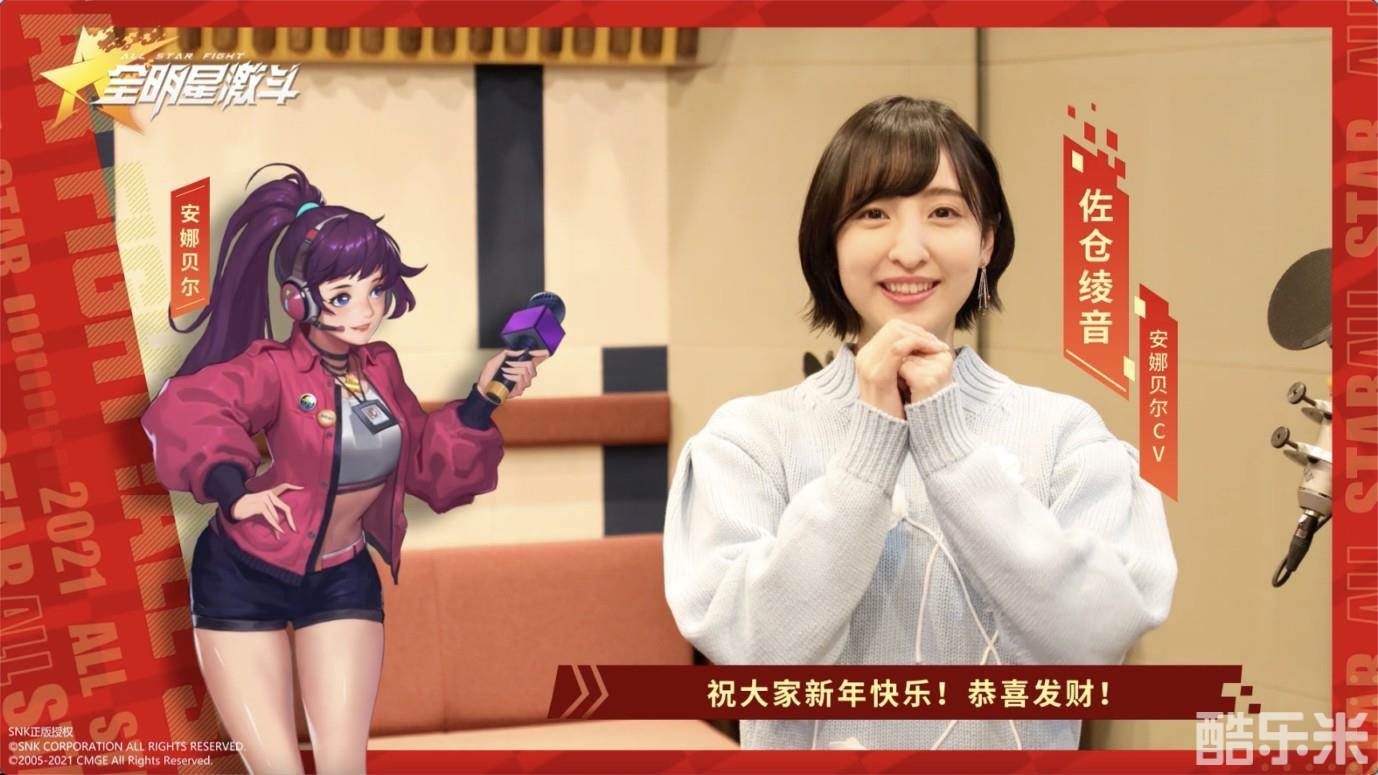 农历新年即将到来之际,《全明星激斗》的明星声优团们首次集结。包括花泽香菜、佐仓绫音以及 “草薙京”声优前野智昭,“二阶堂红丸”声优“前冢厚志”等在内的游戏声优共同出镜,通过视频的方式为中国玩家们送上春节的祝福。