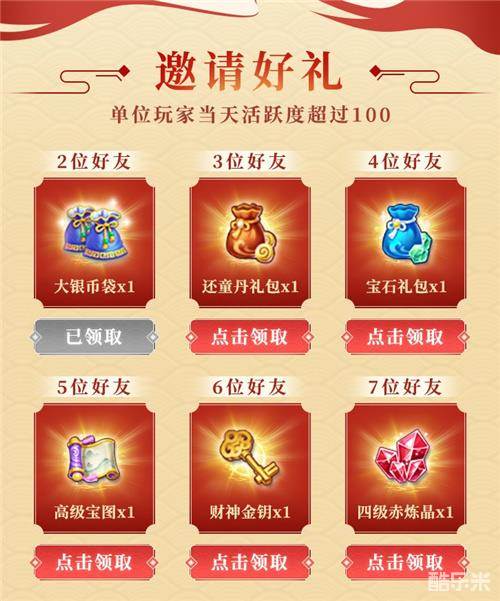 邀请和加入团圆饭都会获得奖励,奖励每日更新,可以重复领取噢!