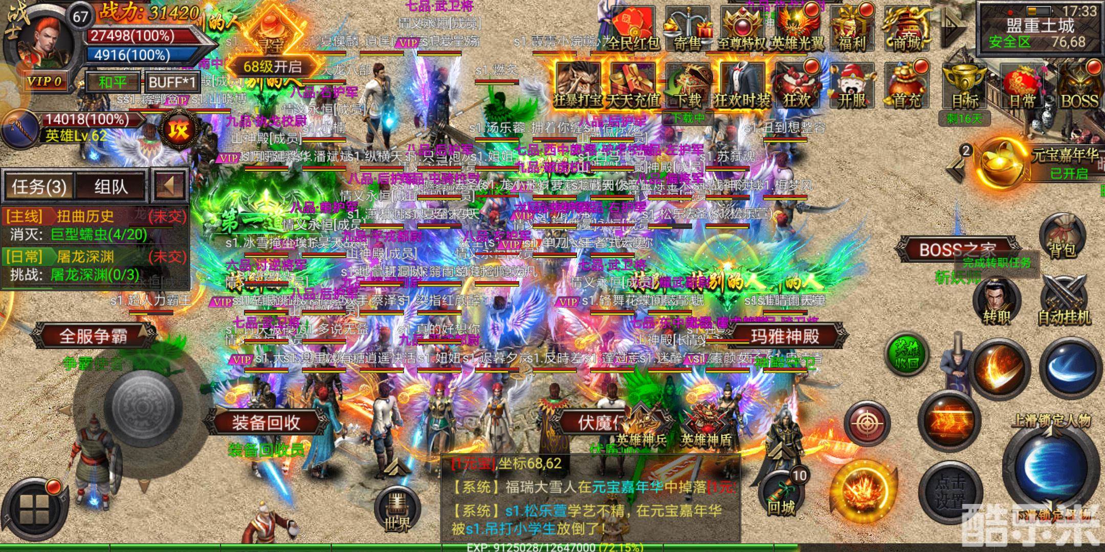 3.转生装备、守护装备、深渊装备、翅膀装备,全都BOSS免费掉