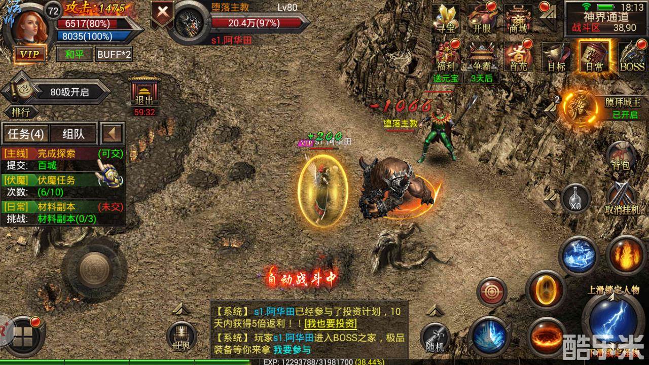 1句话:高度还原复古传奇,新增战神合击功能独创双职业培养体系,神兵切割BOSS刀刀暴击