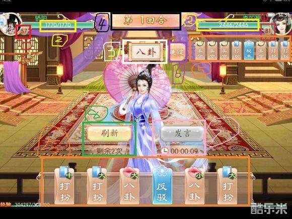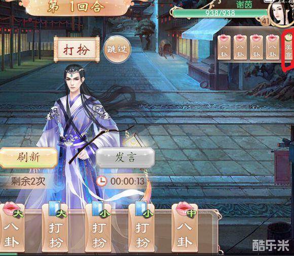 绿色(数字8)部分:刷新和剩下的次数(能改变当前的话术牌,每回合只能刷新一次)