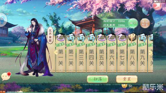 京门风月手游时装传记第八章高分攻略(女号)是小编为大家带来的,第八章——北齐来客,这章最高分11996分,按照下面配装可以得到11996分。