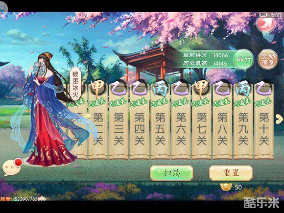 京门风月手游时装传记第七章高分攻略(女号)是小编为大家带来的,第七章——被困冰火,这章最高分14145分,按照下面配装可以得到14066分。