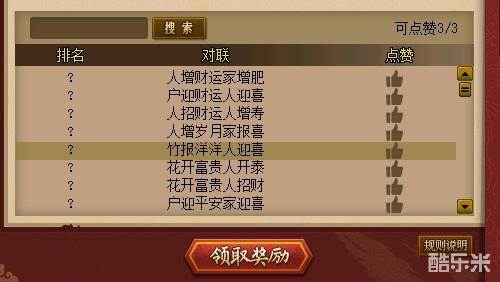 排行榜数据每10分钟刷新一次,系统将按照每日20:00的排行榜数据为各位道友发放奖励。在每日20:00的排行榜中,排名第一的玩家将获得随机道具和经验、道行等数值奖励,排名第二至玩家将获得海量数值奖励。另外,除了排名奖励外,玩家在活动中正常提交对联和点赞,都可以获得数值奖励哦!