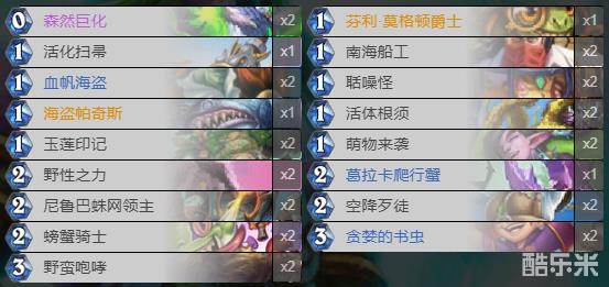 卡组带了螃蟹,针对现在比较火热的海君贼以及海盗战等卡组,带了一张活化扫帚是为了更好的返场。