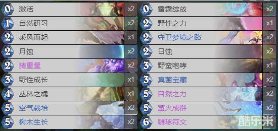 本卡组在传统树人德基础上提速,携带5张低费过牌、7张增费牌、6张5费铺场,基本保证了从4费开始给压力。