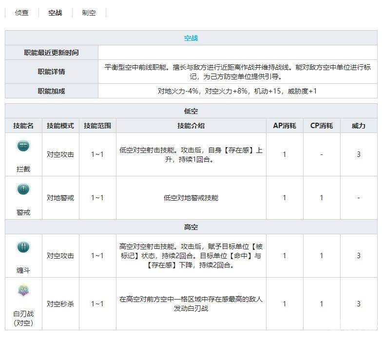 进行攻击时,如果自身的小队成员数为3,则自身的对空火力小幅提升(本次攻击)