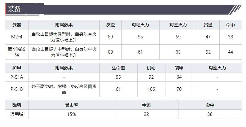 P-51受到攻击时,攻击者的对空火力中幅降低(本次攻击);P-51攻击时,自身的贯通中幅提升(本次攻击)