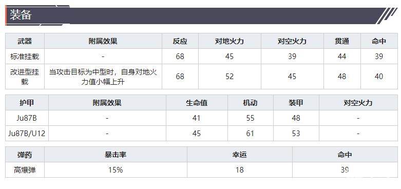 《灰烬战线》攻击机Ju87B斯图卡技能属性介绍