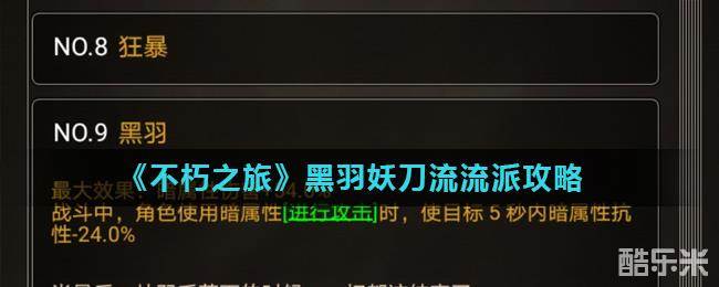 《不朽之旅》游戏中黑羽妖刀流怎么玩?游戏中有着很多不同的流派玩法,一个好的流派玩法能大大提升玩家的战斗力,其中黑羽妖刀流很多玩家表示不知道怎么玩,那么接下来小编为大家带来《不朽之旅》黑羽妖刀流流派攻略,一起来看看吧。