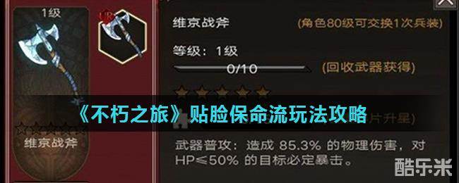 《不朽之旅》游戏中贴脸保命流怎么玩?游戏中有着非常多不同的流派玩法,一个好的流派玩法能够大大提升玩家的战斗力,其中贴脸保命流很多玩家表示不知道怎么玩,那么接下来小编为大家带来《不朽之旅》贴脸保命流玩法攻略,一起来看看吧。
