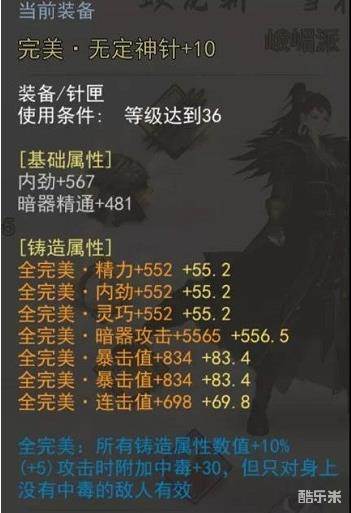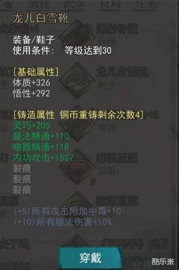 主要为了应用龙儿白雪靴+5特效,攻击附带中毒,最大化给敌人上中毒debuff,增加自身的追魂夺命帖触发频率。