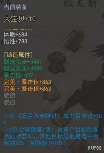 6. 天赋中,我选用了落井下石,日月万光神针自身可存在破甲、中毒、流血、残废 4 种负 面状态,需要团队补足另外两种负面状态(减速、内伤)。