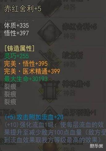 大宝贝直接加成主武学威力,赤红舍利附加流血。