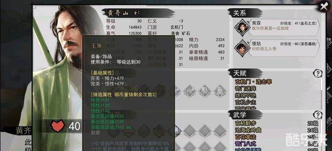 如果还没有作为对应的情缘的话,我们要去把舒芬的情缘给完成了,流程比较短,很快就可以完成。结束之后,我们就把天赋和情缘天赋给加满,去推图就可以了,把我们切磋获得到的经验药和武学药等等全部都吃掉,然后一直把图给推完,最后和门主切磋了就可以得到七宝戒指了。