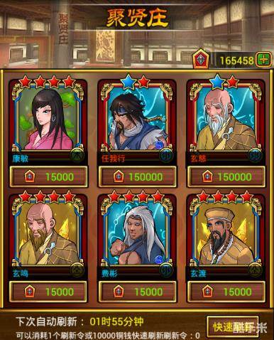 聚贤庄侠客列表每两小时刷新一次,每次消耗一个道具刷新令或10000铜钱可以刷新一次。