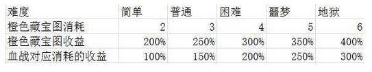 但可通过上面收益表看得出,难度越高,藏宝图的收益就会渐下滑,虽然还是肯定会比血战高,但难度上就不可同日而语了。