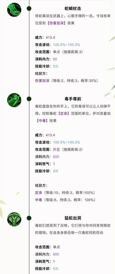 《汉家江湖》驭蛇术属性效果介绍
