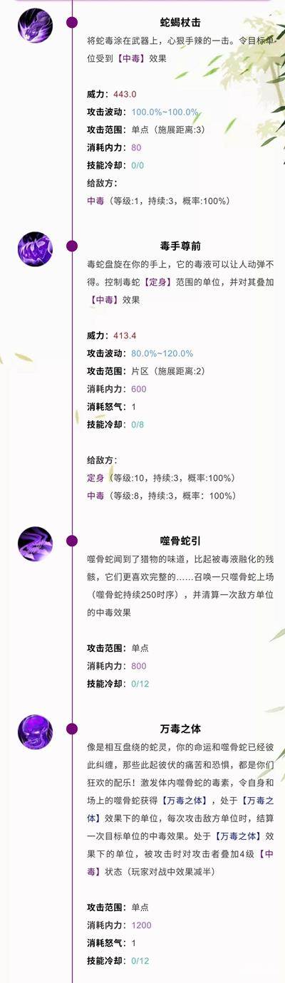 参研满级效果:造成的中毒伤害提升30%,驱蛇术及其绝学威力+20%