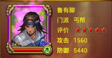 说说为什么鲁有脚能够挤掉萧峰、郭靖两张六星卡牌成为核心。鲁有脚自带“污衣派”和“丐帮帮主”,前者能在出阵时为己方门派为丐帮者提供攻击力12.7%的加成,后者能为丐帮侠客提供21.9%的防御加成,进可攻退可守,而且与郭靖、黄蓉都有缘分加成,可以达到60%的防御力提升!