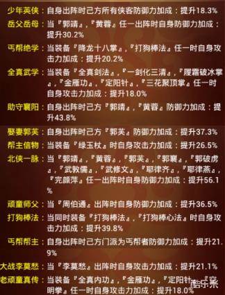 光是搭配郭靖、黄蓉可以增加“(30.2%+43.8%+56.1%)X2=260%”的防御,再加上自带与黄蓉一样的“丐帮版主”,两人同时在场能为丐帮增加近50%的防御,堪称“最强之盾”。