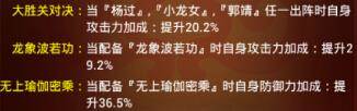 二是装备秘籍缘分多,兵器位置可以配六星的金轮和五星的五轮大转都有加成,两个武器都能触发缘分的,