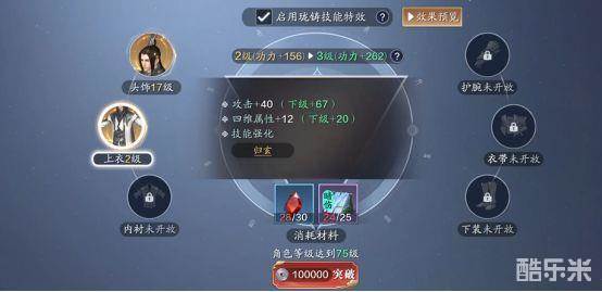 76级珑铸开放了上衣6-10级。6-10级共需要270个冶玲珑初,20个冶玲珑·深,95个珑铸上衣,180W碎银提升396点功力。具体消耗和功力加成如下图。