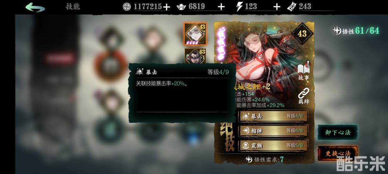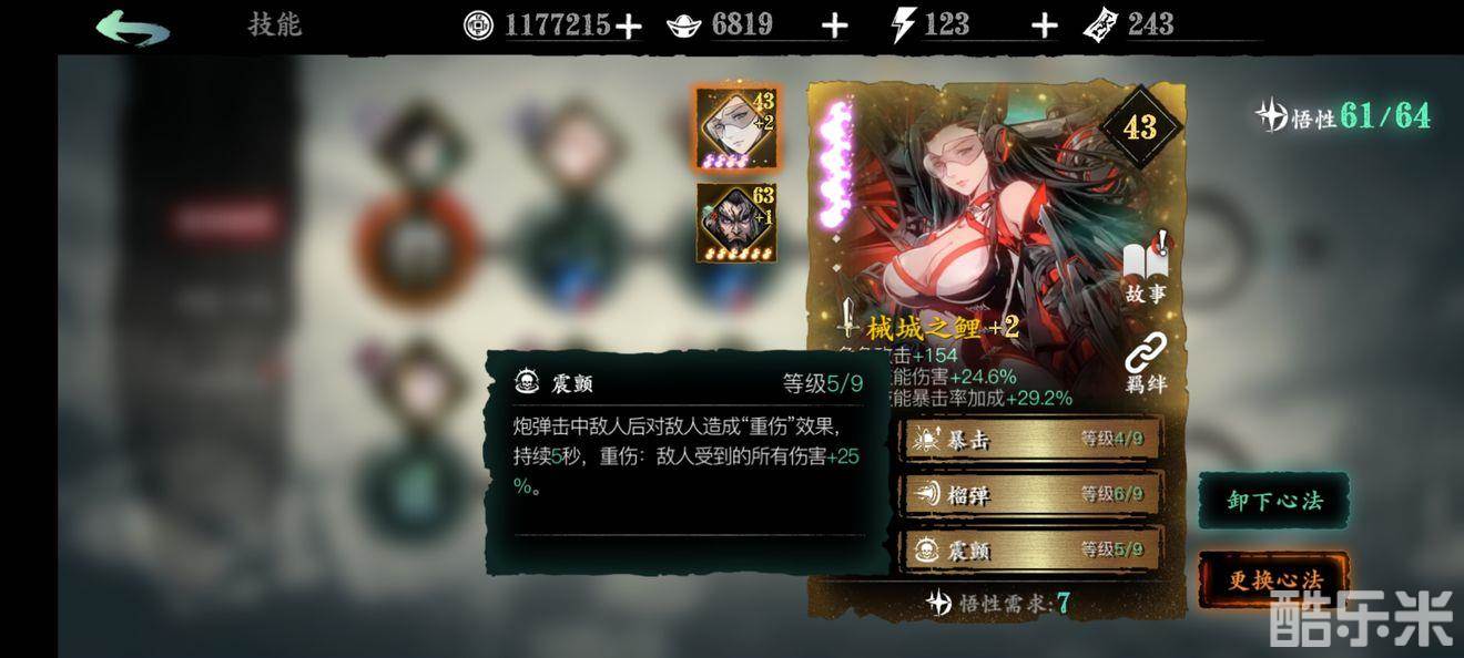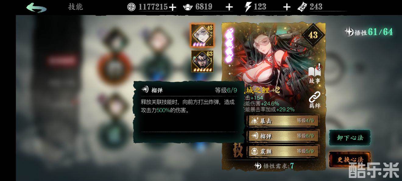 在觉醒技能上可以放一个和尚和一个减cd心法 玉落盘珠上放鲤鱼,鲤鱼一绝技可以提升关联技能暴击率还有增加伤害,鲤鱼的炮弹飞得比盘珠快,所以能吃到易伤。(他们说易伤没效果,我也不知道有没有,反正无所谓啦)心法的绝技伤害都能被切切转换成真实伤害