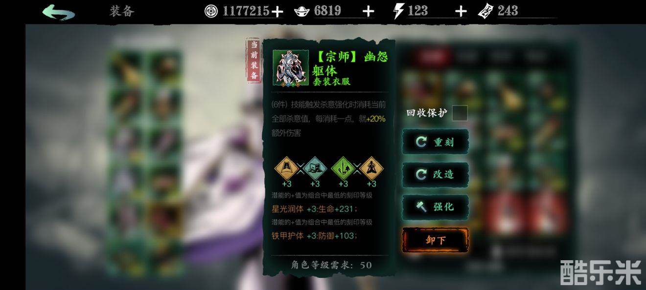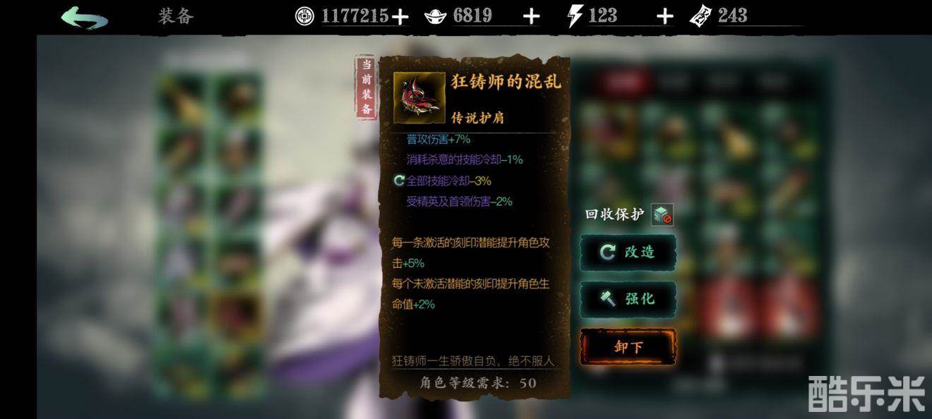 武器上也可以洗2个,但是没铜币啦,然后出啦天道的潜能就没洗啦,这样狂肩就有30%攻击力加成,美滋滋。我现在在做混沌法裤,还差几个专属就出啦,到时候看看提升如何,先给你们试路。