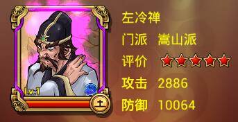 游戏里的左冷禅虽然对比其他顶级卡片,属于二线的五星阵容,但是其威力还是相当巨大,五绝之后,五岳流派打法的兴起,使左冷禅重新回到玩家的视野中。