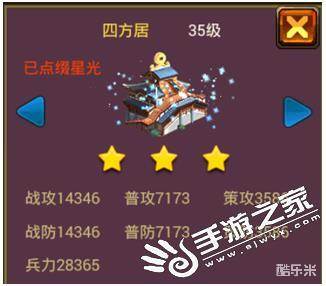 满级属性:11346战攻(战防),5673普攻(普防),2836策攻(策防),28365兵力